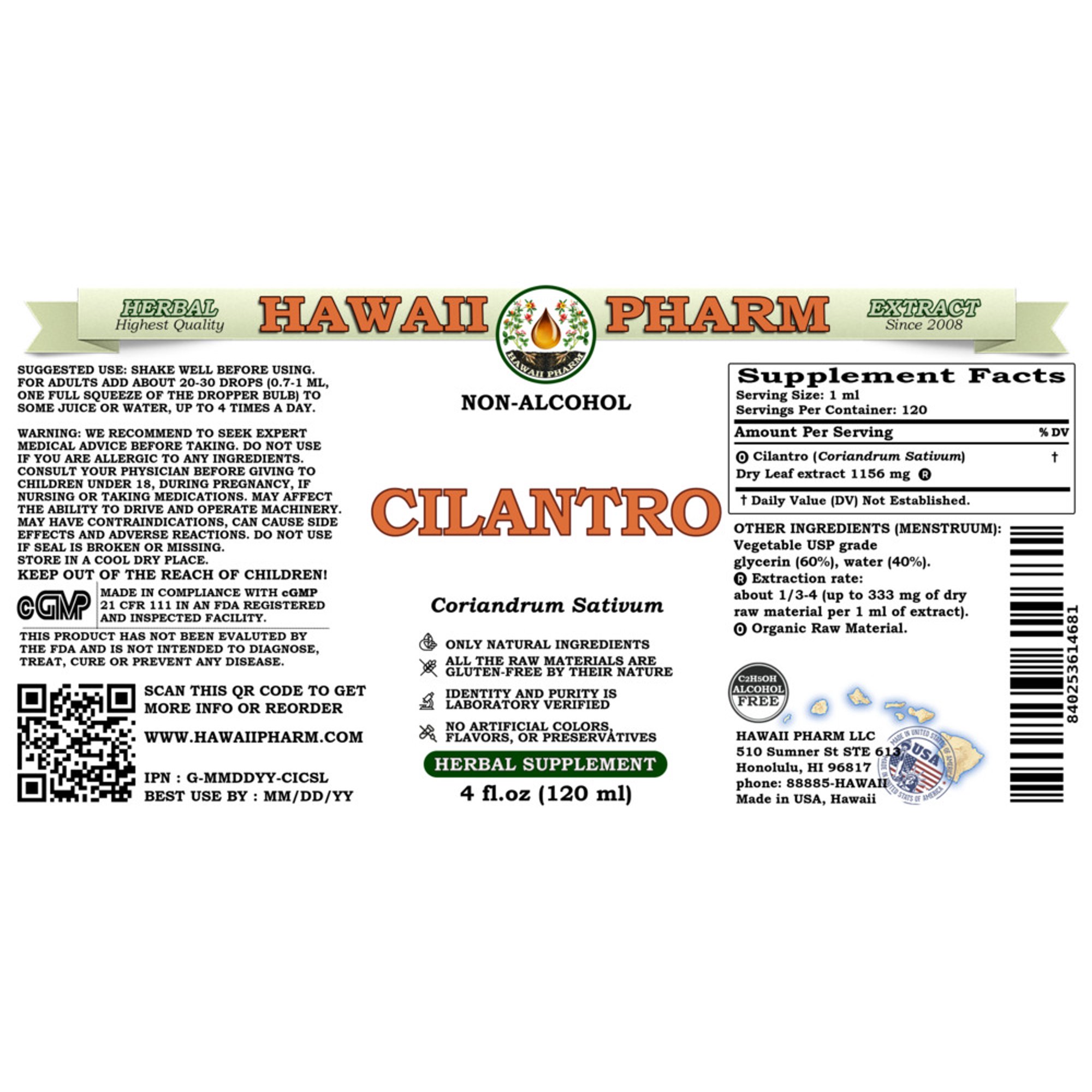 Hawaii Pharm Cilantro Liquid Extract – 4oz (118ml)