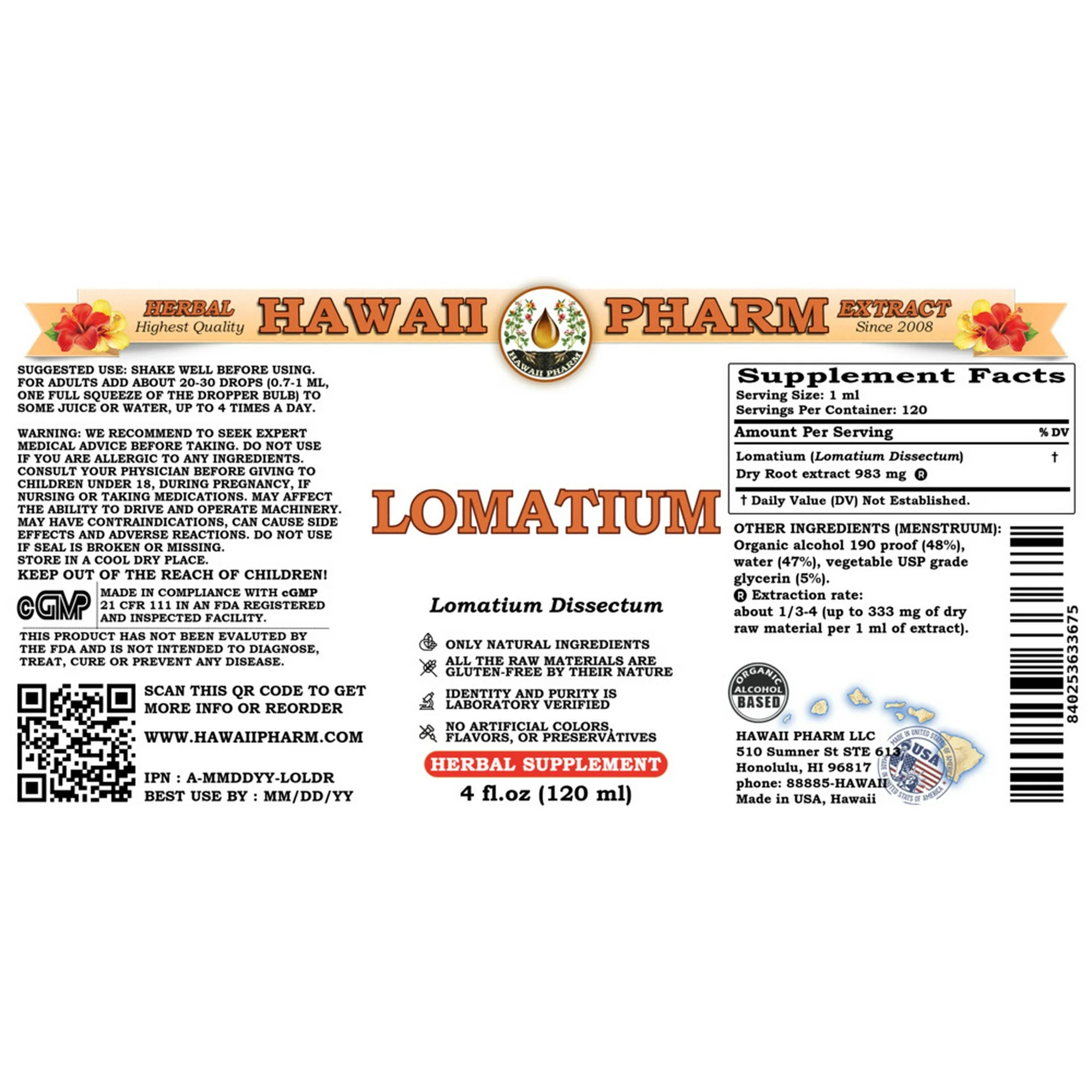 Hawaii Pharm Lomatium Liquid Extract – 4oz (118ml)