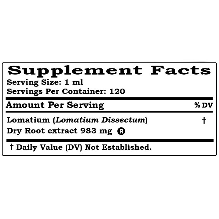 Wild Harvested Lomatium (Lomatium Dissectum) Dried Root (Origin: USA); vegetable glycerin, crystal clear water.